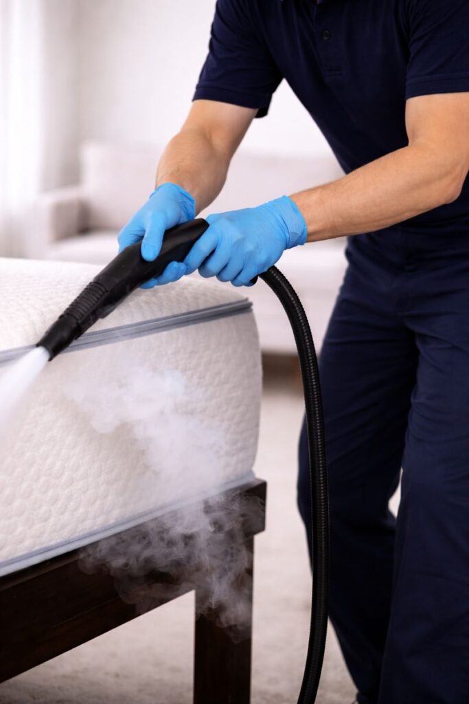 We begin by removing live bed bugs, eggs, and debris using high-heat steam and commercial vacuums.
